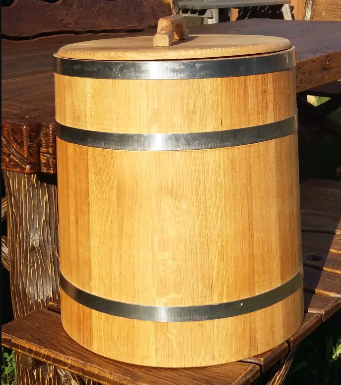 Дубова діжка відмінно підходить для засолювання самих різних продуктів – овочів, грибів, м'яса, риби або ягід.